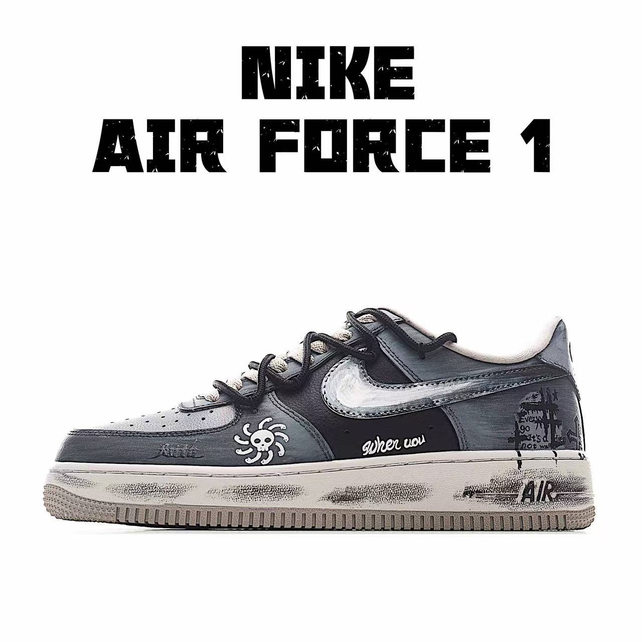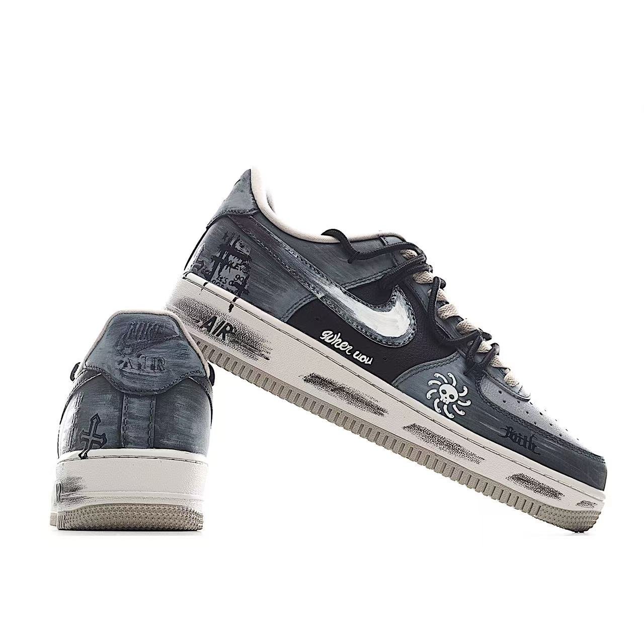 首页 Private customization Hand-painted graffiti “Ink-stained Skeleton” Nike Air Force 1 “Ink-stained Skeleton” customized board shoes for Air Force 1 brand CW6871-777