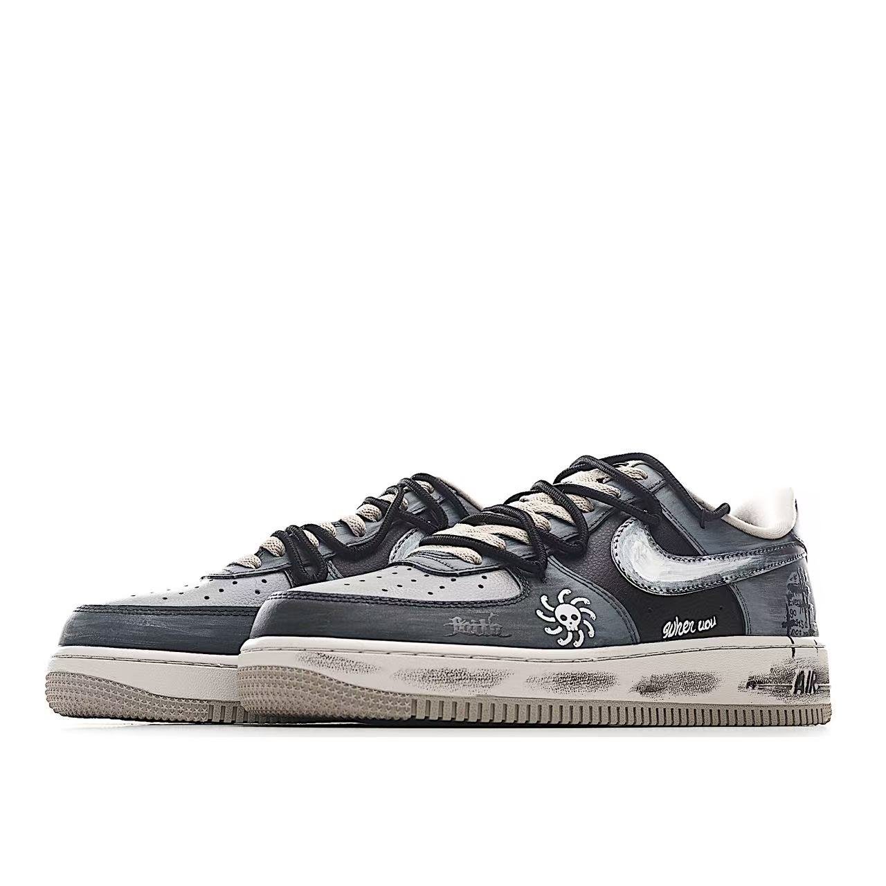 Hand-painted graffiti “Ink-stained Skeleton” Nike Air Force 1 “Ink-stained Skeleton” customized board shoes for Air Force 1 brand CW6871-777