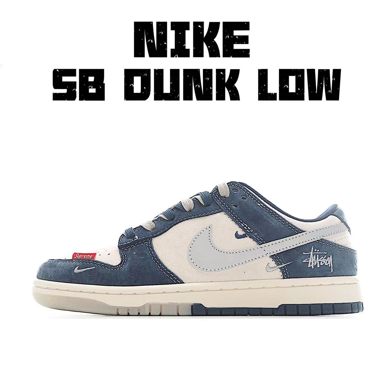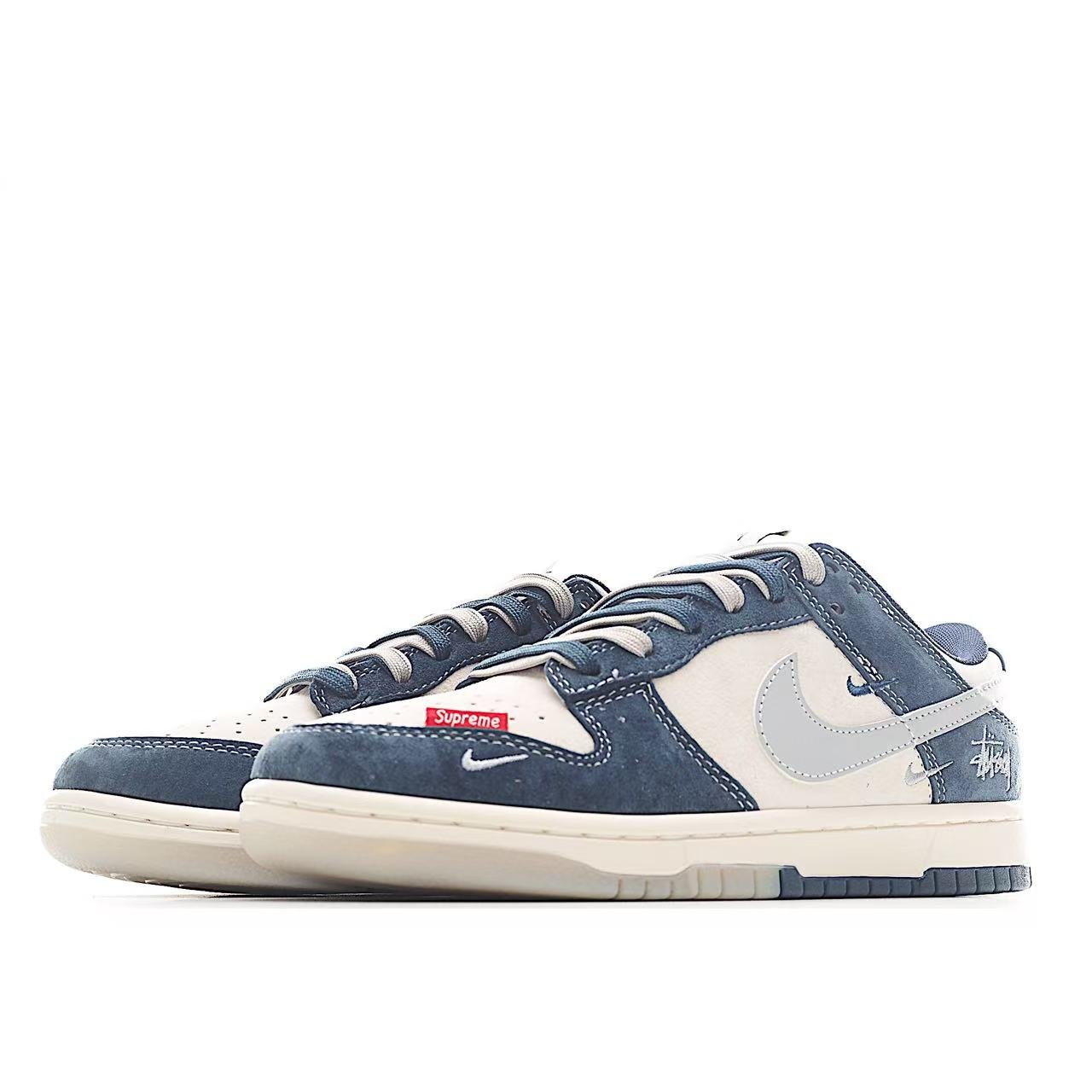 SB Dunk Low – Stussy collaboration – Blue, White, Gray stripes – Anniversary high-end custom low-top casual sneakers – DM6868-030