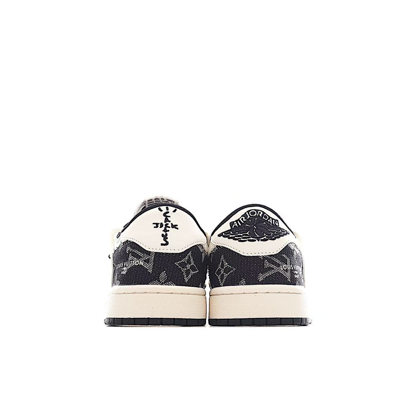 Travis Scott x Fragment Design x Air Jordan 1 Low OG SP AJ1 LV collaboration – Black denim drawstring, low-top cultural casual sneakers, model number YX5066-323